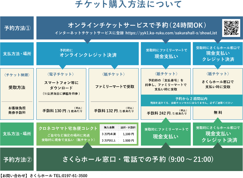 購入方法②さくらホールへ電話での予約(9:00~21:00)