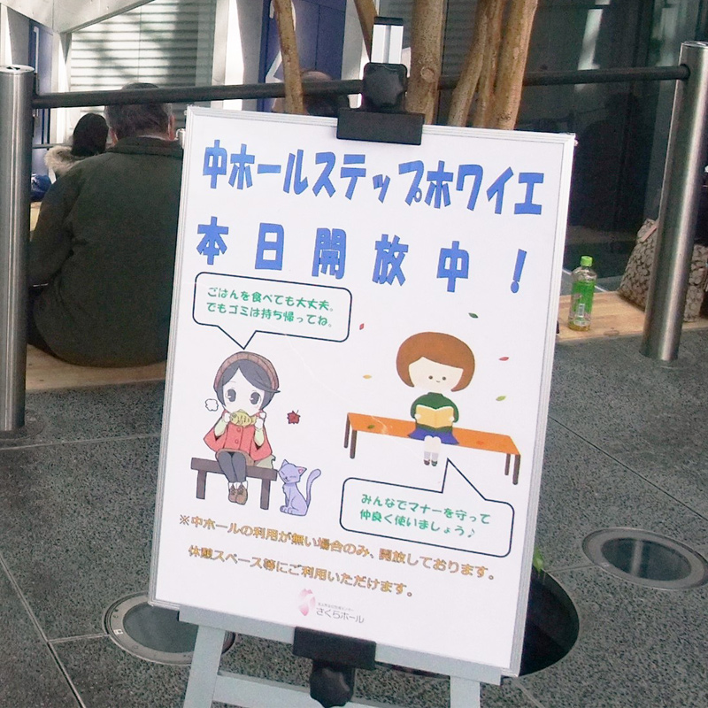 さくらパークは開館中、どなたでも自由に訪れることができる場所です。アクティングテラスやホワイエなどの空間は、自由に芸術活動の雰囲気を楽しめるスペースです。