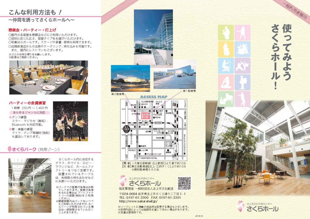 メディア芸術の分野でアニメーションなどがクールジャパンとして世界中で盛り上がっています。 そんな昨今、さくらホールではコスプレ撮影での施設利用も承っております。 ≪条件≫ ホール、アートフ