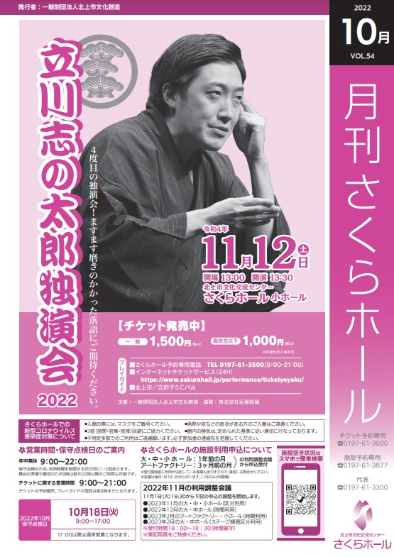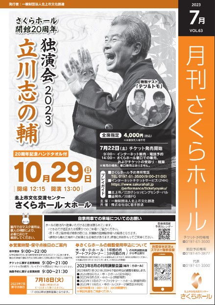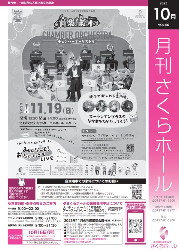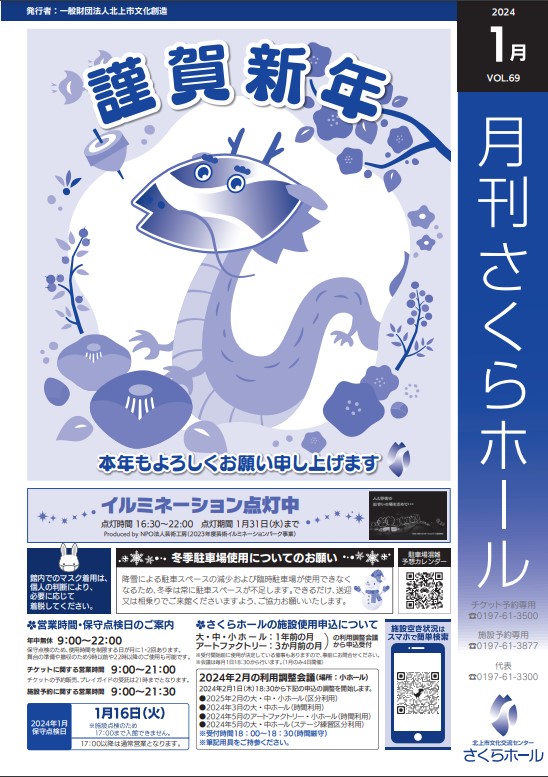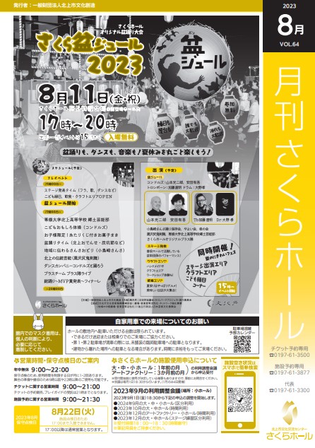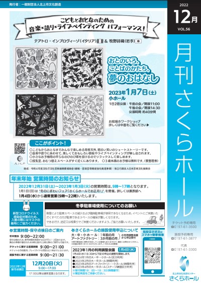 毎月のイベントカレンダーや催事情報・ホールからのお知らせなどが掲載されています。